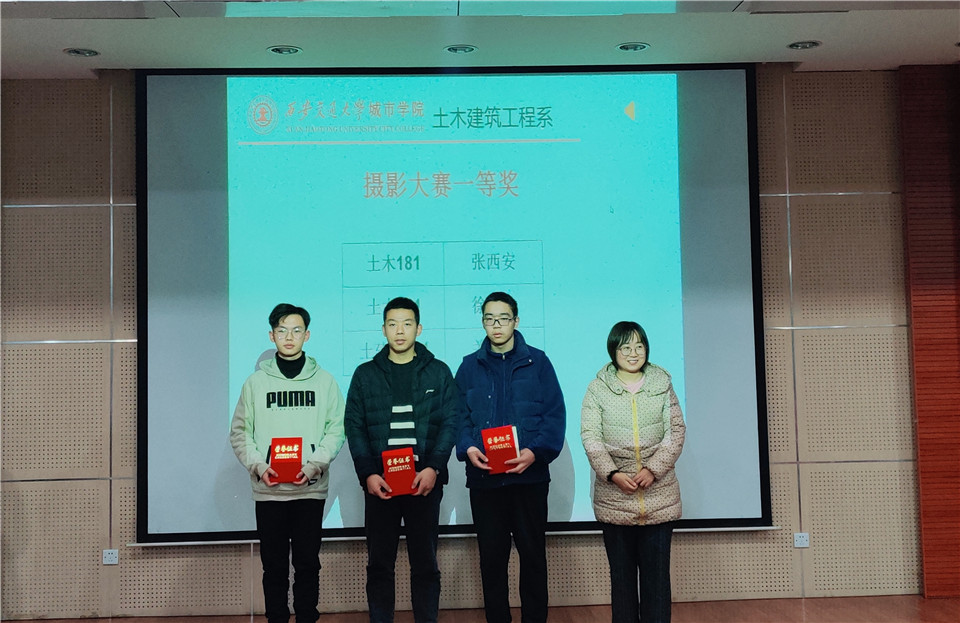 12月17日下午,土木建筑工程系在F100报告厅举行2019年优秀学生表彰暨寒假课外实践创新活动部署大会,系主任廖红建教授,主任助理康彦青老师、黎莹老师及全系教职工出席参加,共同为各类获奖学生颁发荣誉证书和奖牌,同时,大会就大学生创新创业竞赛和寒假建筑摄影比赛两项工作向全体师生进行了安排部署,大会由系学生主管牛彦龙老师主持。