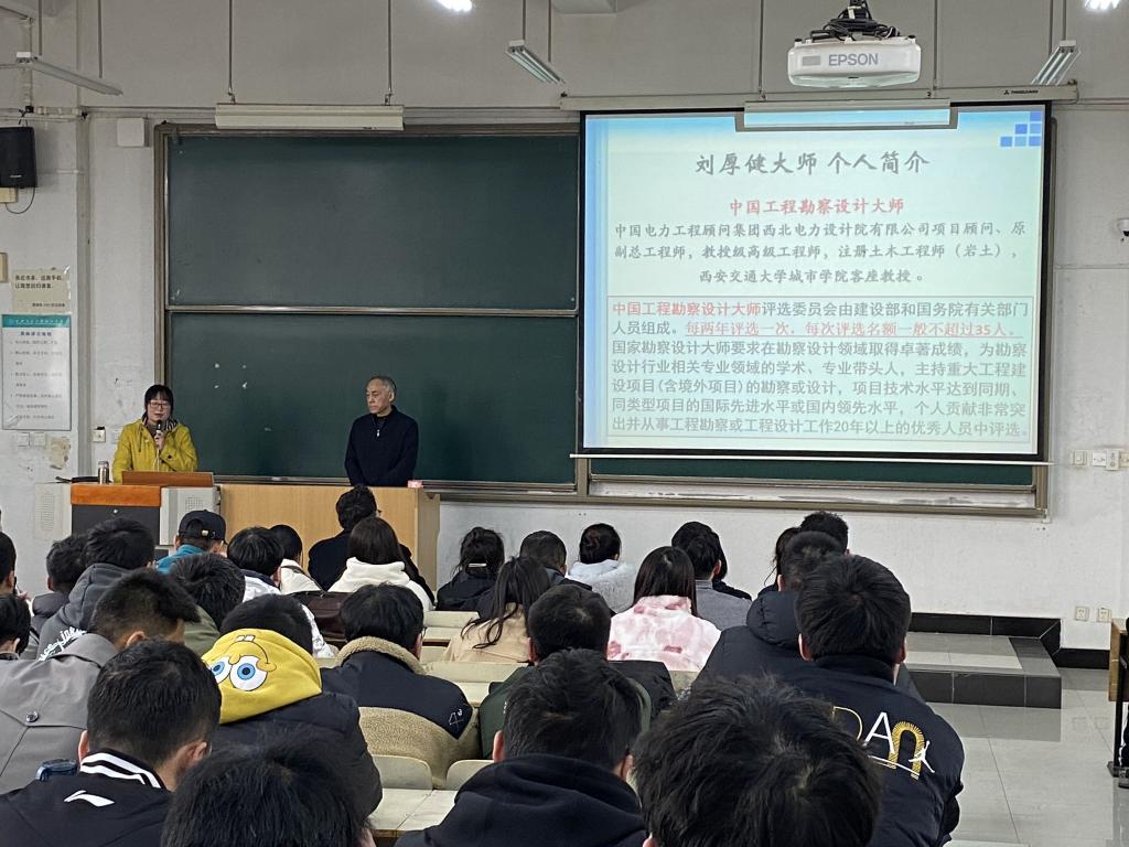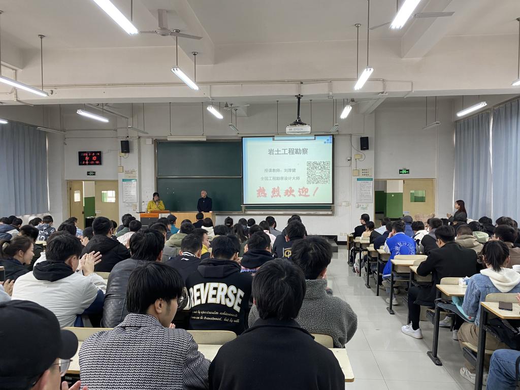 为更好提升专业人才培养质量,推进学科交叉融合创新,深化新时代工程应用型人才培养内涵,土建系在2020版培养方案中新增交叉学科选修课程《岩土工程勘察》,邀请全国工程勘察大师、教授级高级工程师、米乐mile官方网站客座教授刘厚健作为主讲教师。 在课堂中,刘教授首先以西安城墙、青藏铁路、秦岭隧道和上海金融中心等中国著名工程为例,讲述了土木工程在社会发展进程中凸显的重要地位和意义,在课程讲授中向学生传达作为一名土木工程师必备的专业素养,向学生展示了“课堂所学”与“工作所用”之间的联系,指出专业课程设置是多年的积累和社会反馈。刘教授的课程深入浅出,理论结合实际,将岩土工程勘察和土木工程建设有机融合,在授课过程中,刘教授还勉励学生认真学习专业知识,励志成才,学生认真听讲,不时为刘教授送上热烈的掌声。
