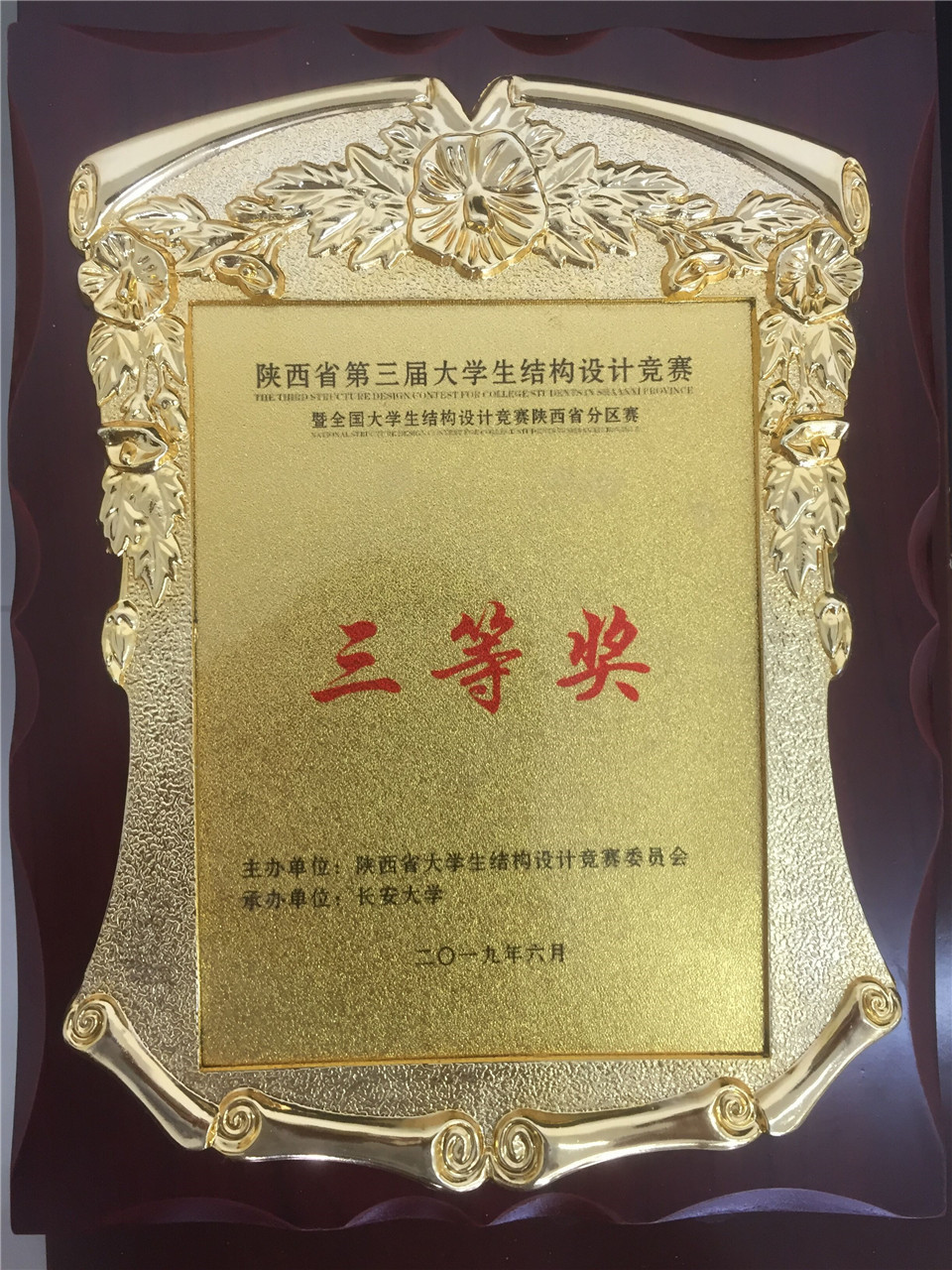 2019年6月2日下午,陕西省第三届大学生结构设计竞赛在长安大学渭水校区圆满闭幕,米乐mile官方网站土木建筑工程系2016级学生夏晨阳、周学斌、潘奕帆、朱浩祥组成的参赛队,在指导教师凌伟和雷博的指导下,在大赛中通过16个小时的现场制作,成功通过加载,获得三等奖。