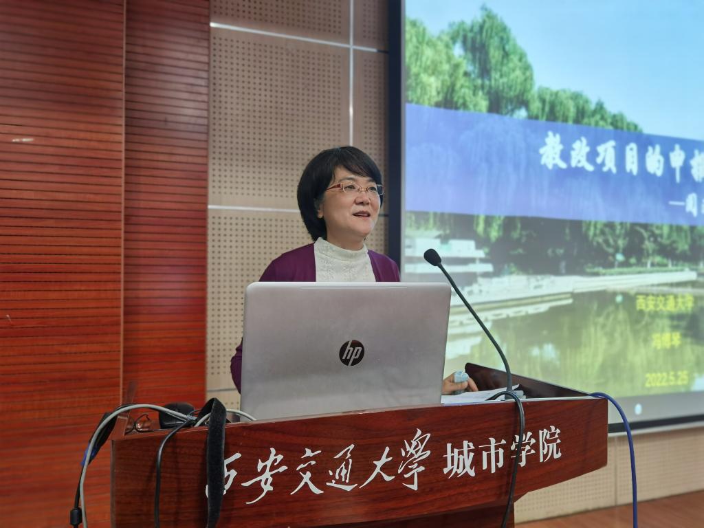 为了鼓励广大教师积极申报教改项目,提升申报质量,5月26日上午,冯博琴名师工作室与教师发展中心在F100报告厅联合举办《教改项目的申报与实施——阅改申请书几点感悟》专题报告会,参加会议的有副院长朱旭、教师发展中心主任史冬梅、数学教学部主任张世梅以及学院名师工作室的后备名师代表,会议线上线下同步进行,由冯博琴名师工作室召集人、土建系主任廖红建教授主持。