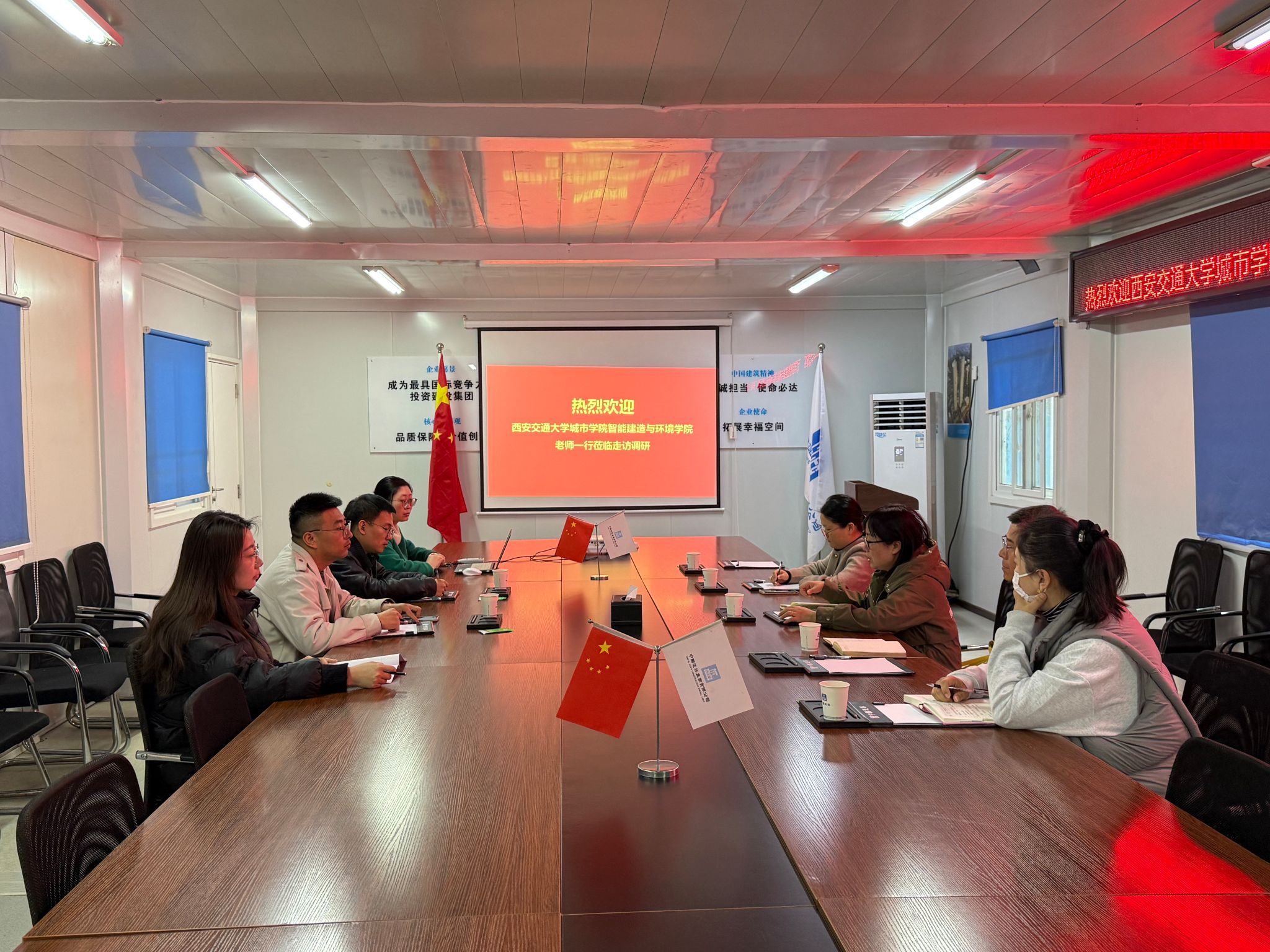 为进一步推进土建学院的就业工作,拓宽毕业生就业渠道,加强与企业的紧密联系,3月19日,智能建造与环境学院副院长黎莹、土木工程系主任代倩、学生工作负责人李辉以及辅导员张庆莹、杨洋一行五人前往中建新远凝远厂房项目开展访企拓岗专项行动。项目总工刘玮、商务部合同管理工程师段青青、造价工程师刘依林、技术质量部资料工程师闫丽蓉出席了活动。