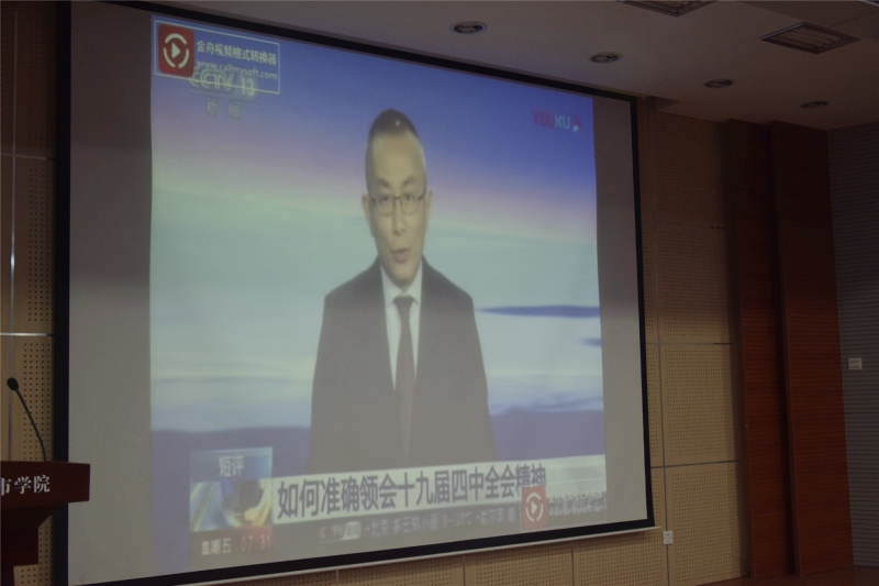 在学习中,全体同学观看了十九届四中全会精神解读视频,更直观的了解了会议精神,师生更加明确依法治国是坚持和发展中国特色社会主义的本质要求和重要保障,是实现国家治理体系和治理能力现代化的必然要求,这是从政治上、全局上、战略上的全面考量,既是毫不动摇坚持中国特色社会主义方向的政治宣示,也是坚定不移的将新时代改革开放推向前进的政治动员。