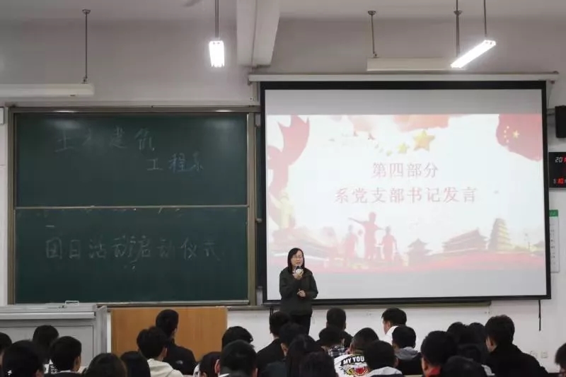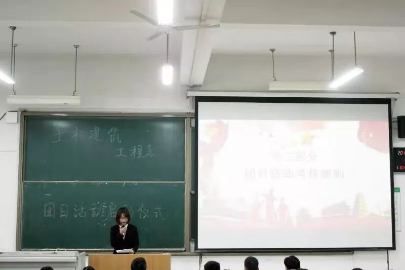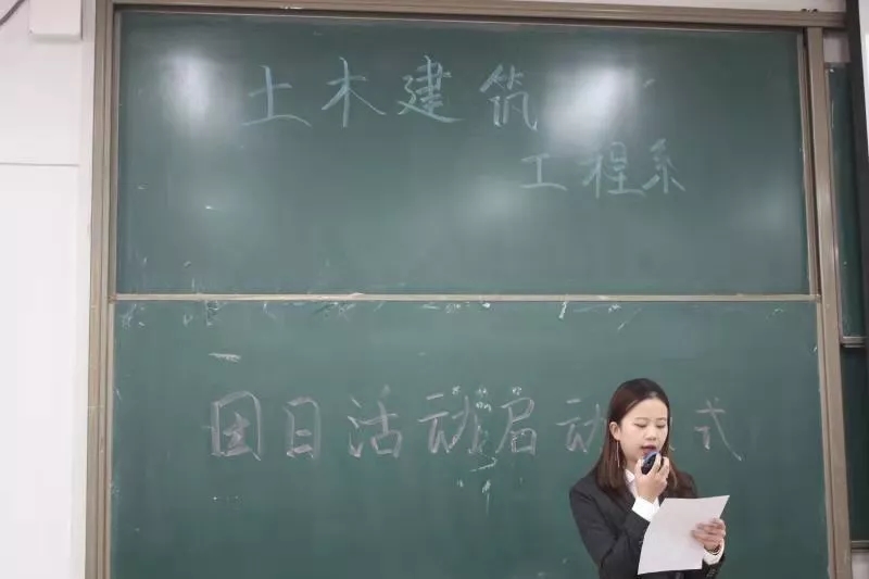 活动开始主持人张诗羿同学介绍了参加本次启动仪式的主要嘉宾,土木建筑工程系党支部书记康彦青老师,土木建筑工程系学生主管牛彦龙老师, 土木建筑工程系团工委书记吴丹老师 , 土木建筑工程系团工委副书记刘峻铭出席参加。