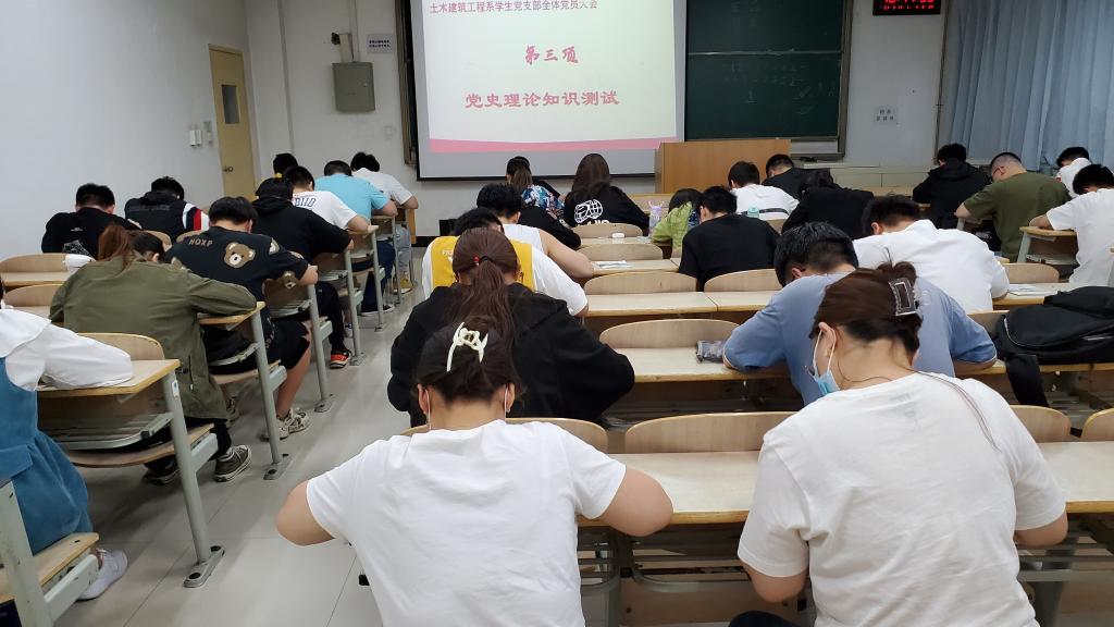 随后,支部组织全体党员进行了党史知识竞赛,以赛促学、以赛促用。竞赛采取线上定时阅题,线下填写答题卡的形式进行,在支部党员的带领下,土建系各班级也参与了党史知识竞赛,在全系营造出了奋勇争先、比学赶超的学习氛围。