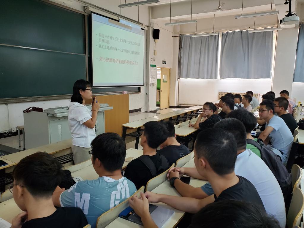 9月2日中午,土建系在C100教室组织举行全系学生考研动员大会,并部署下半年学生在考研方面的具体工作,系主任助理康彦青,学生主管牛彦龙,专业教师郭秀芹与系17级本科、19级专升本确定参加2020考研的毕业生以及2018级全体学生参加。