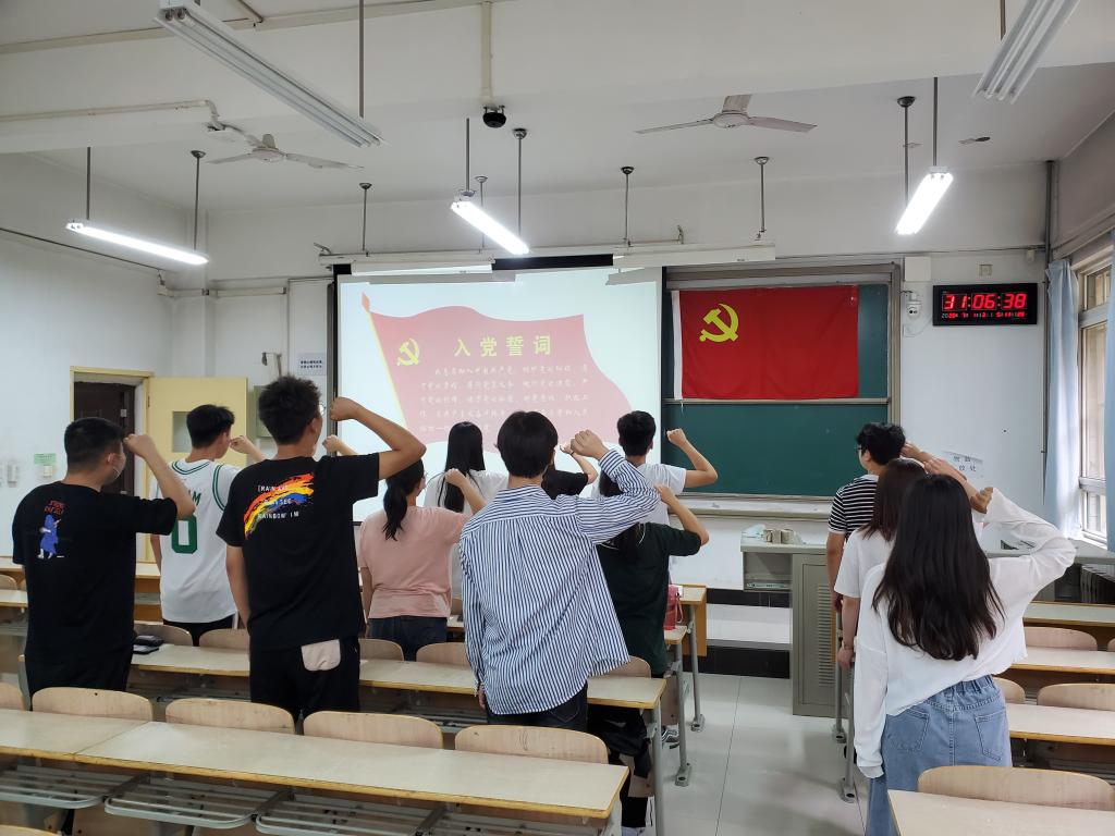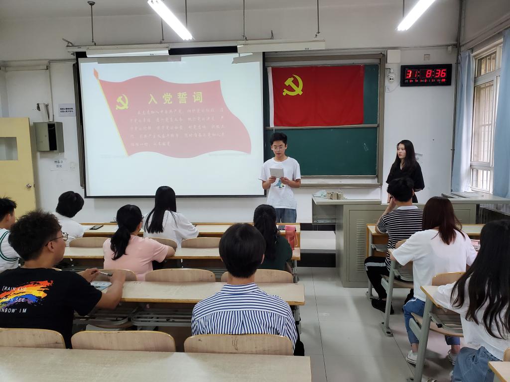 党支部组织委员周学斌同学带领全体党员,面向党旗庄严宣誓,重温入党誓词,铿锵恢宏的宣誓表达了大学生党员坚定的理想信念和努力奋斗的决心。随后,支部书记牛彦龙老师介绍了此次活动的重要意义,组织同学们观看国家记忆系列纪录片《中国有了共产党》,回顾学习党的历史,铭记党的奋斗历程,领略中国共产党自成立以来在革命、建设、发展中谱写出的新篇章。最后大家向支部汇报了近期的思想与学习情况,交流了本次活动的体会。