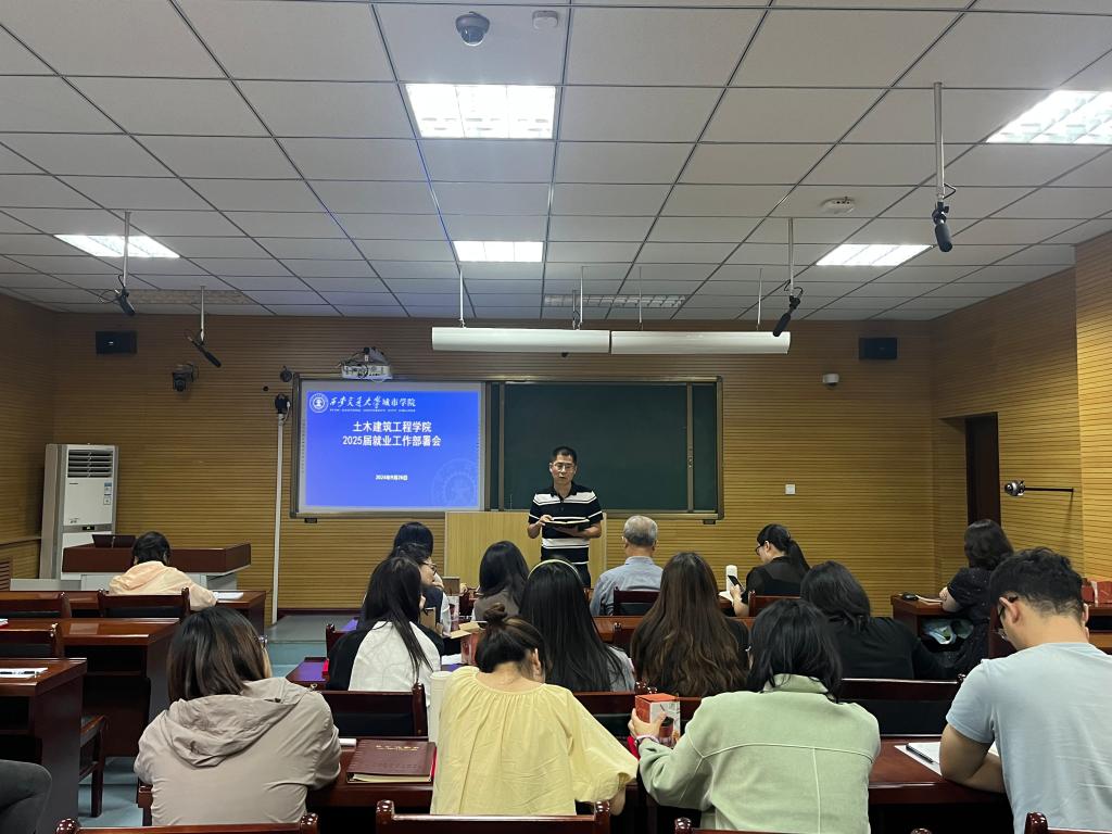 为部署和启动2025届毕业生的就业工作,土木建筑工程学院于926日在B407教室召开就业工作部署会。院长廖红建、副院长黎莹及全体老师参加会议。会议由学生工作负责人李辉主持。